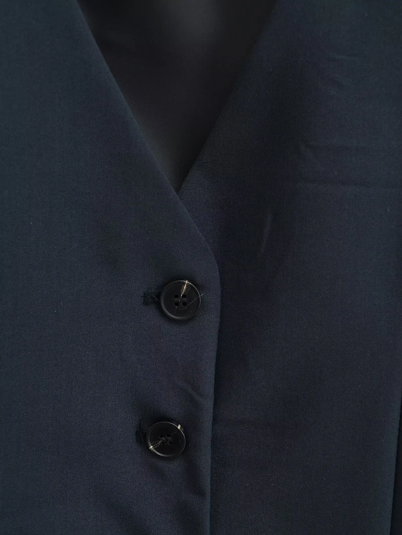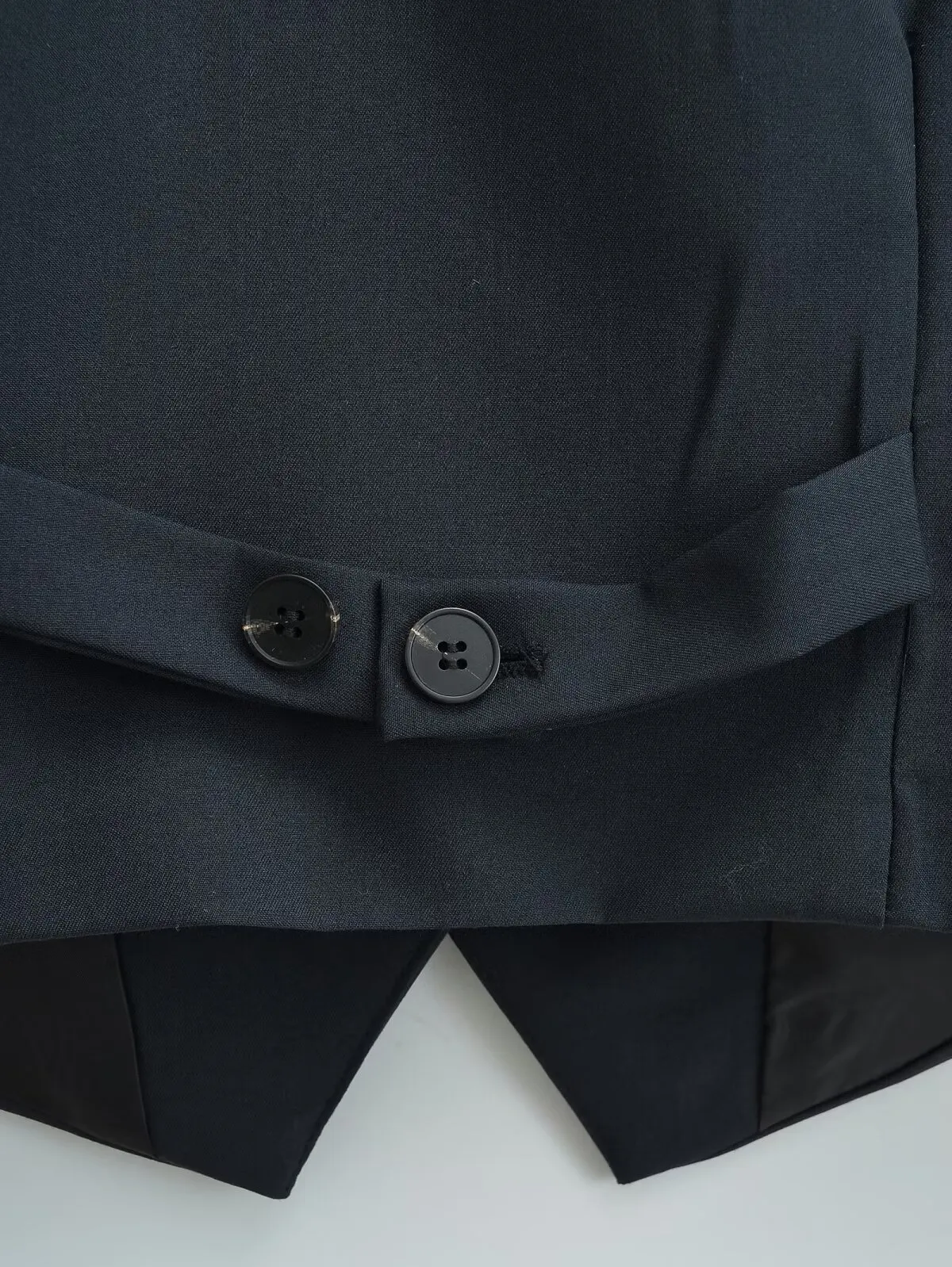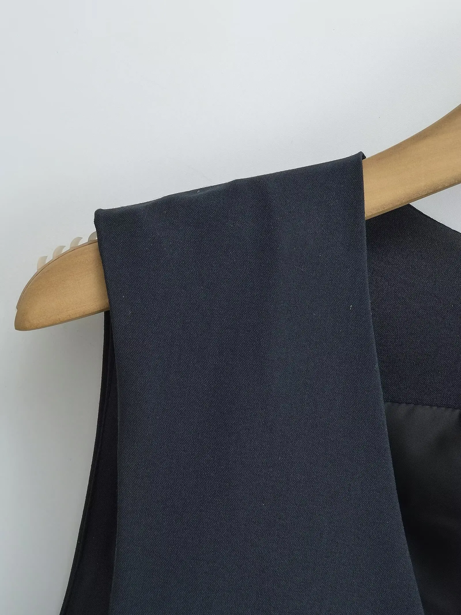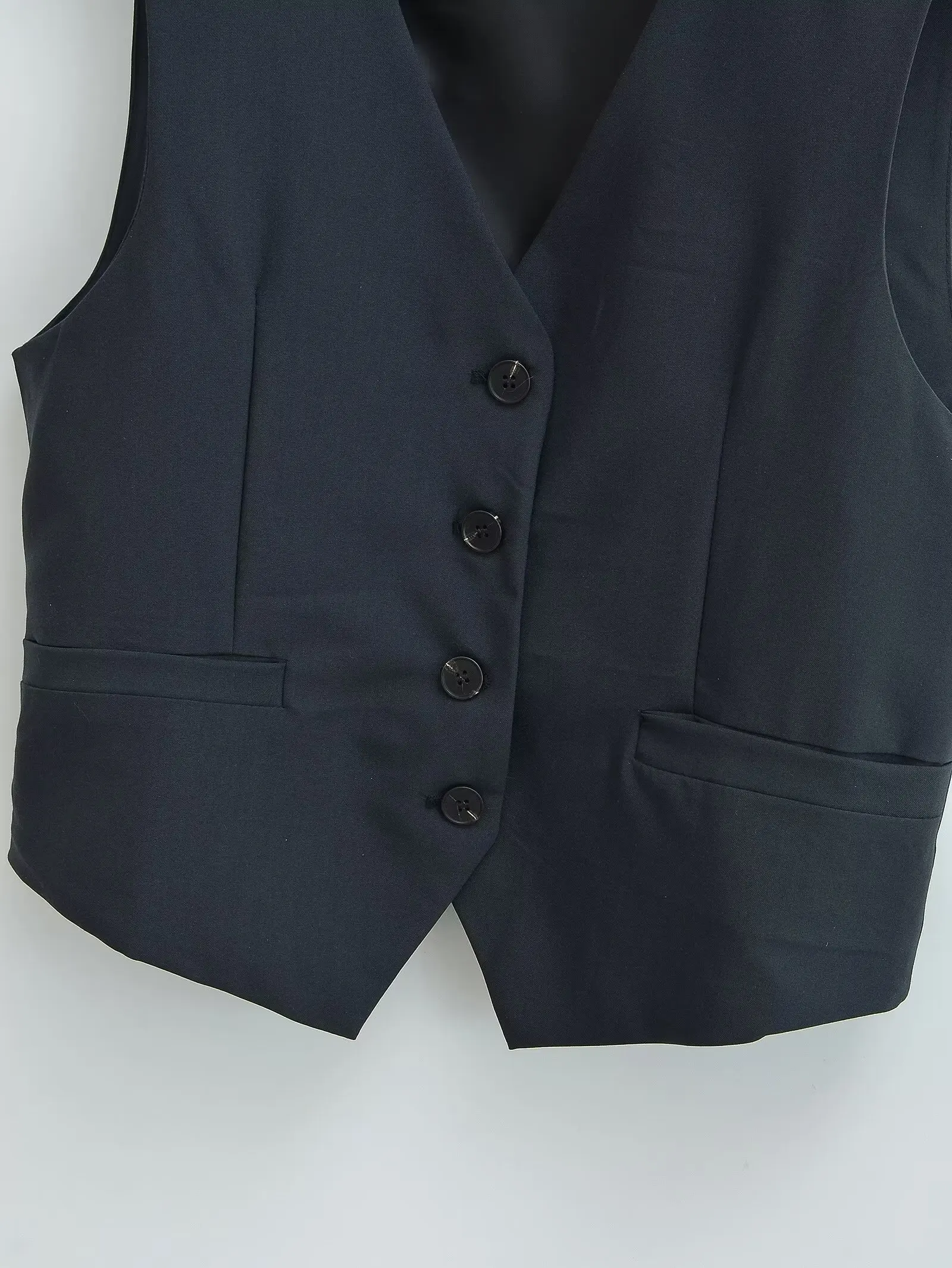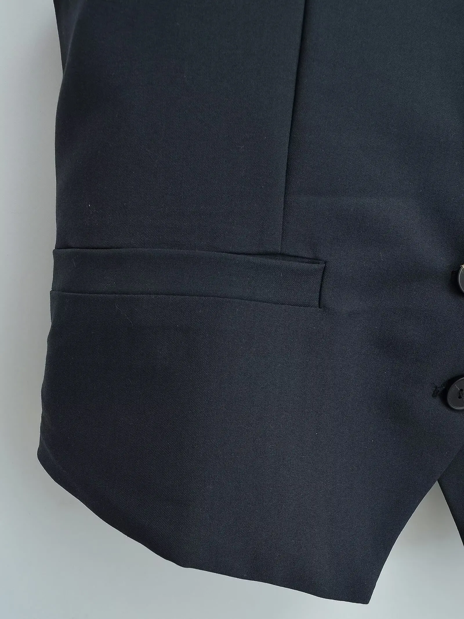 TRAFZA Casual Office Lady Blazer Women Solid V Neck Pockets Sleeveless Single Breasted Long Jacket Fashion 2024 Spring Coats
