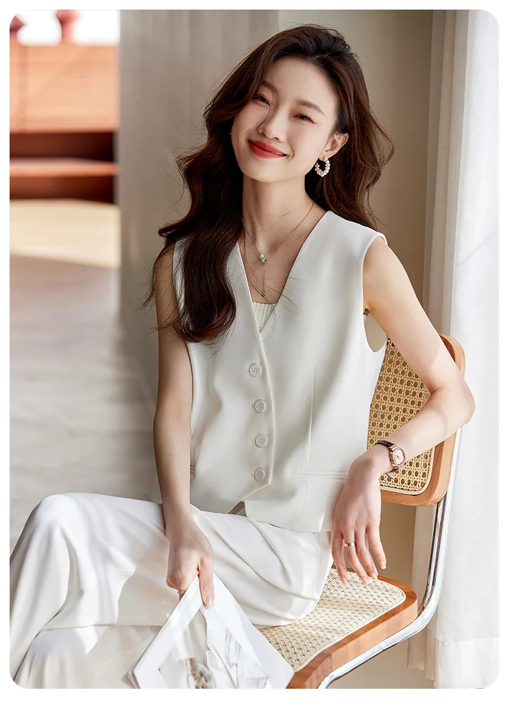 Women's White Suit Vest2024New Spring and Summer Sleeveless Waistcoat Vest Cardigan Suit Suit